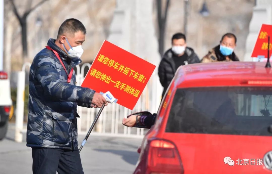 2月10日,在北京朝陽區(qū)高碑店鄉(xiāng)半壁店村西店社區(qū),黨員們志愿者們高舉提示牌“溫馨無聲”提醒進(jìn)入人員進(jìn)行檢查。