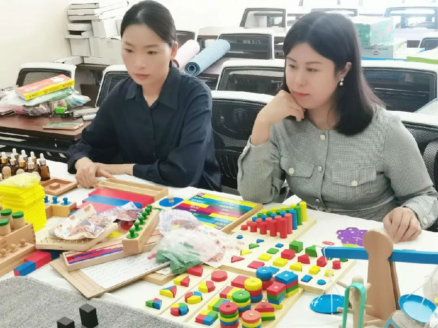 9月3日,鎂瑛慧管家學院管家講師Kathleen教管家們蒙氏教具的操作方法。
